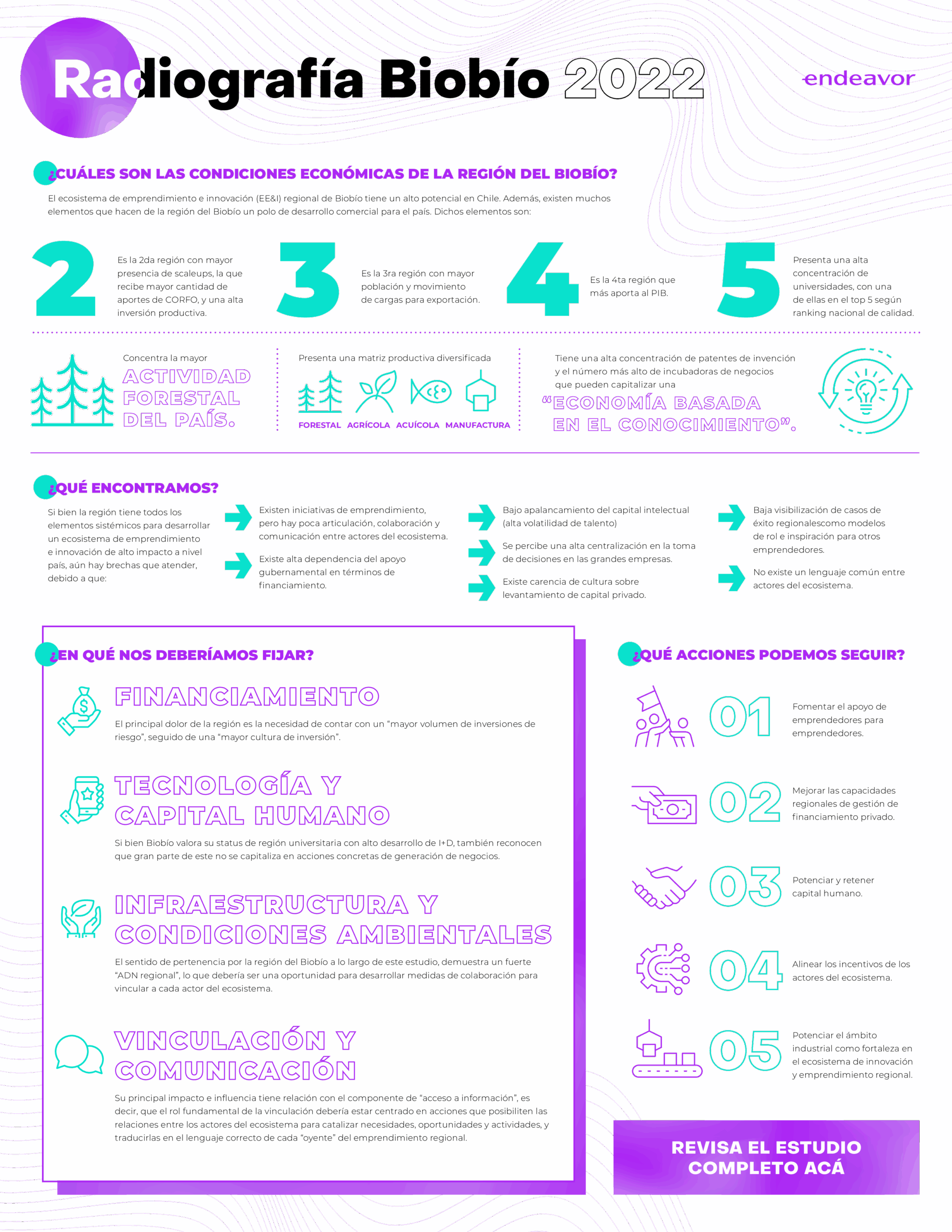 La región del Biobío tiene todas las condiciones económicas necesarias para transformarse en el ecosistema de emprendimiento e innovación regional más importante de Chile, pero para lograrlo aún debe enfrentarse a importantes brechas que se pueden resumir en: colaboración, comunicación y articulación. ¡Conoce más sobre el ecosistema en la región!